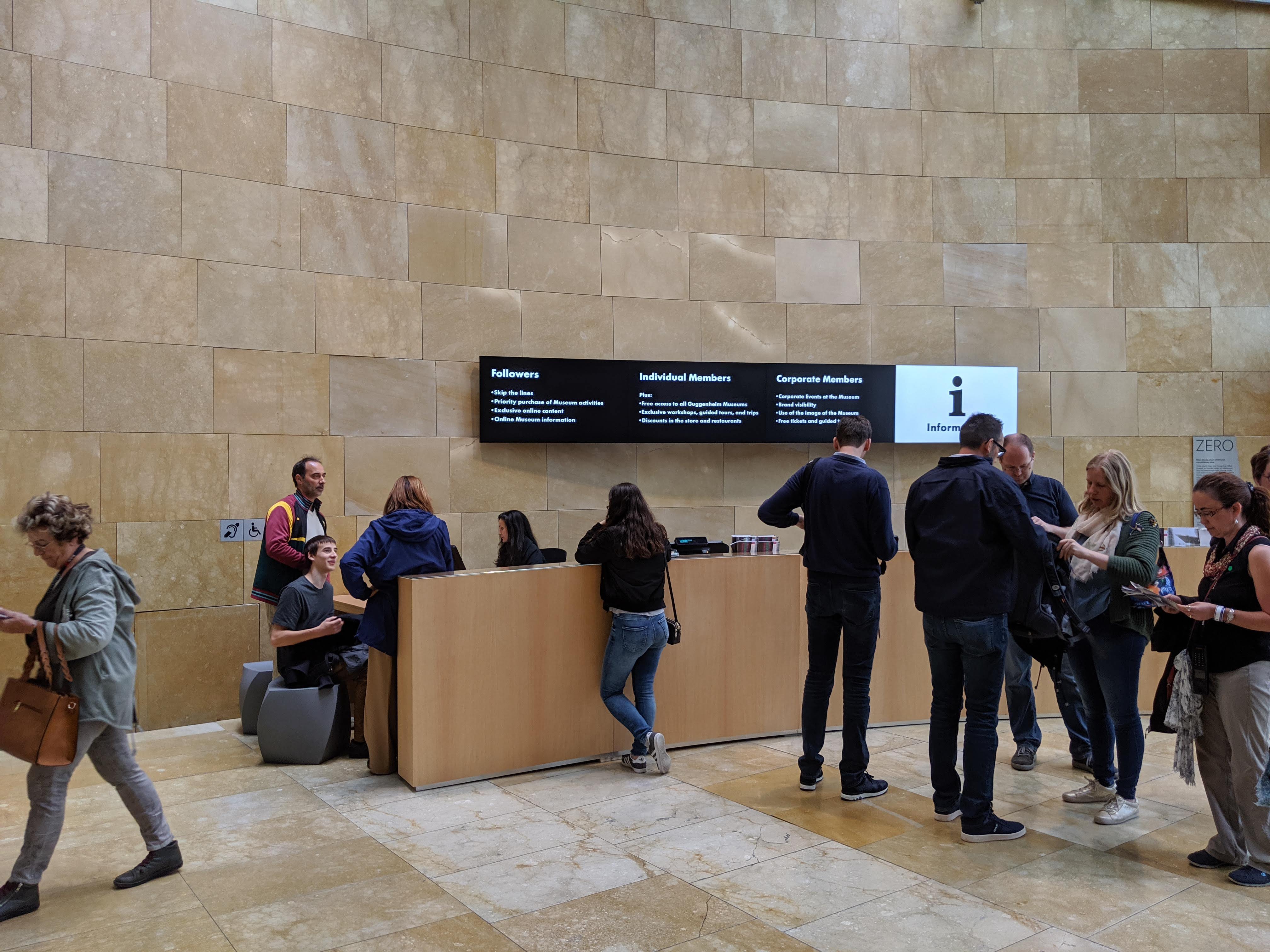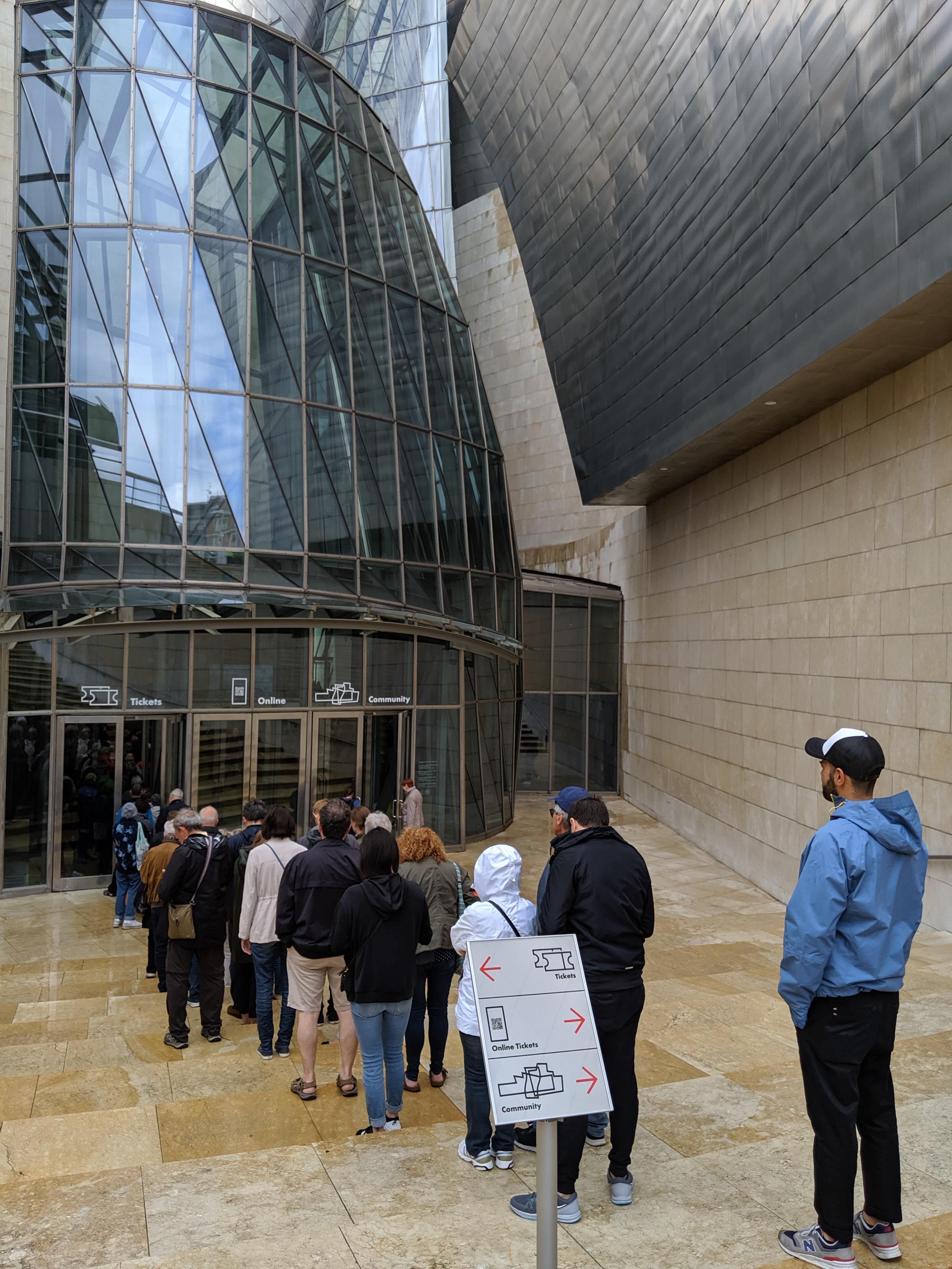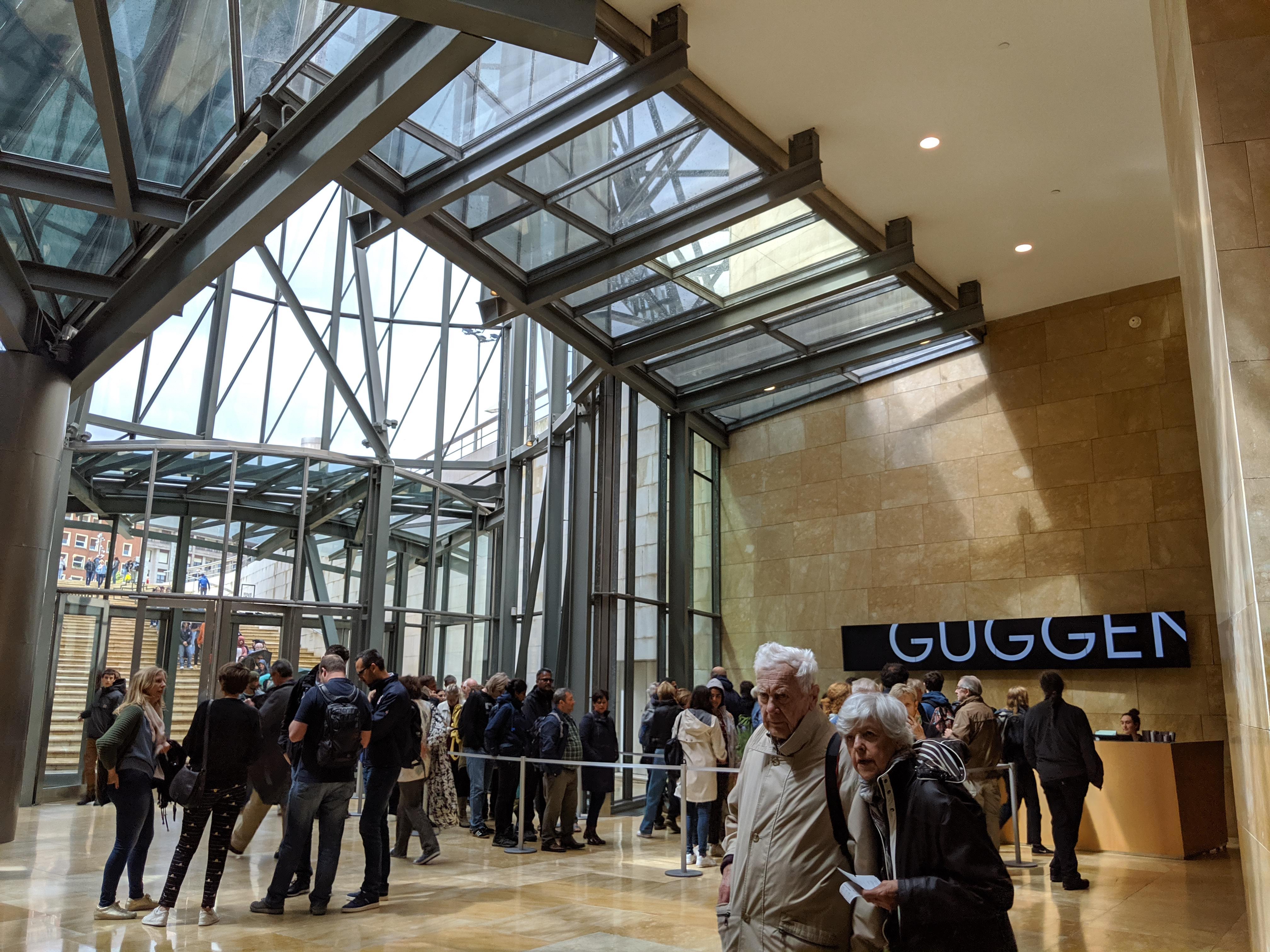 Local Projects was invited by the Guggenheim Museum Bilbao to reimagine the visitor experience within Frank Gehry's iconic titanium-clad architecture. The challenge: transform the lobby and visitor journey to gracefully handle both quiet moments and peak crowds, creating an intuitive flow that preserves the visitor's sense of awe upon entering while modernizing how they discover and navigate the museum.